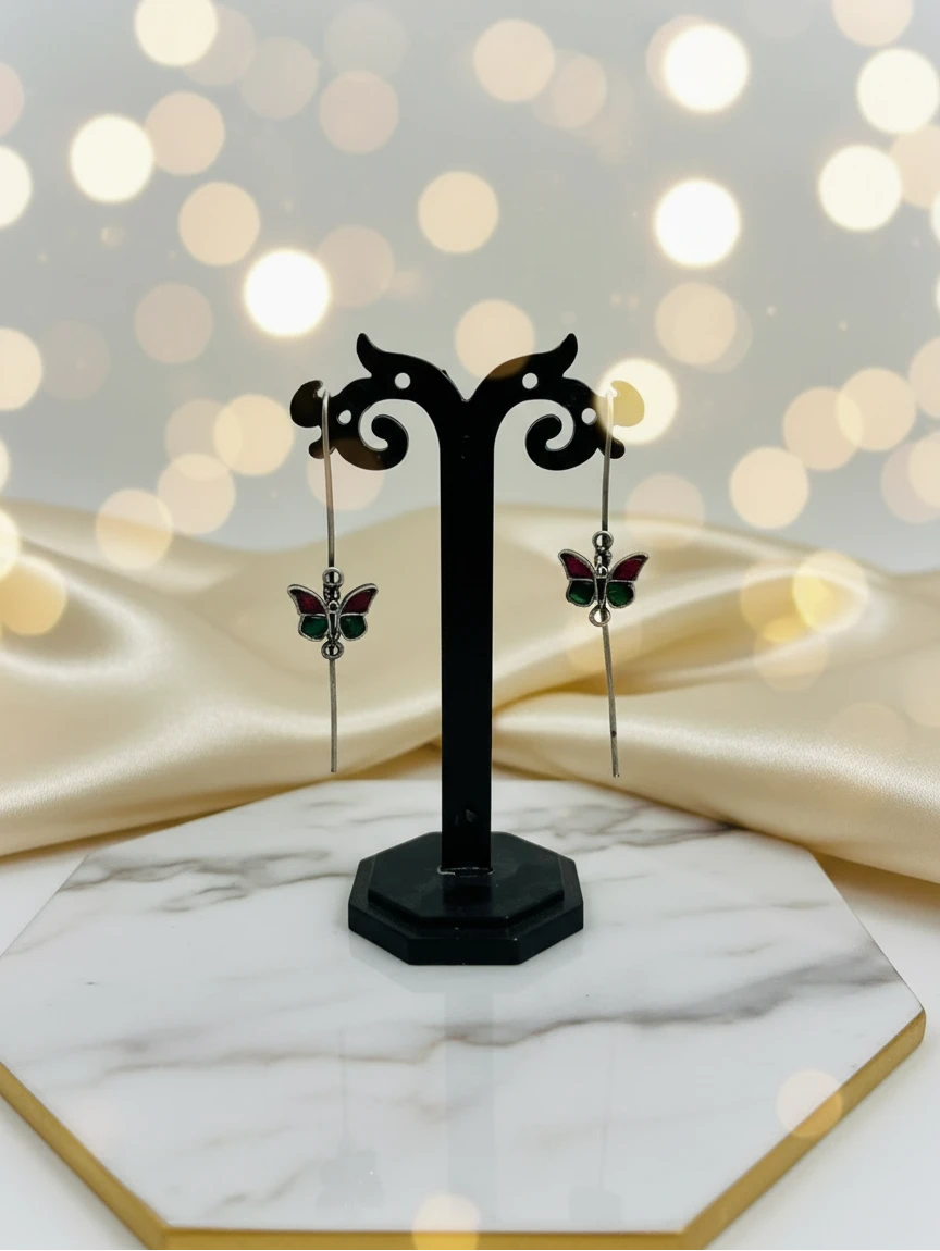 Elevate your ethnic collection with our Butterfly Bugadi, a masterpiece of traditional craftsmanship. Featuring an intricate butterfly design rendered in oxidised silver, this earring showcases the timeless appeal of classic Indian jewelry. The oxidised finish adds depth and character, creating a sophisticated contrast that complements both traditional and contemporary styles. Crafted with premium quality materials and meticulous attention to detail, these bugadis are designed to make a lasting impression. Perfect for festive occasions or everyday elegance.