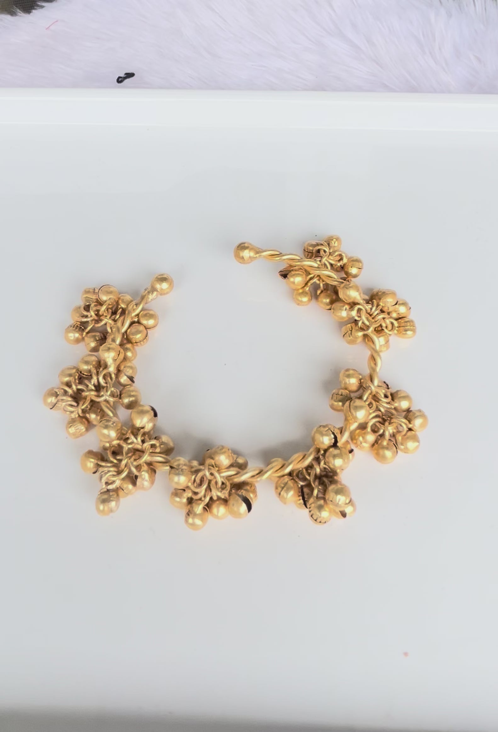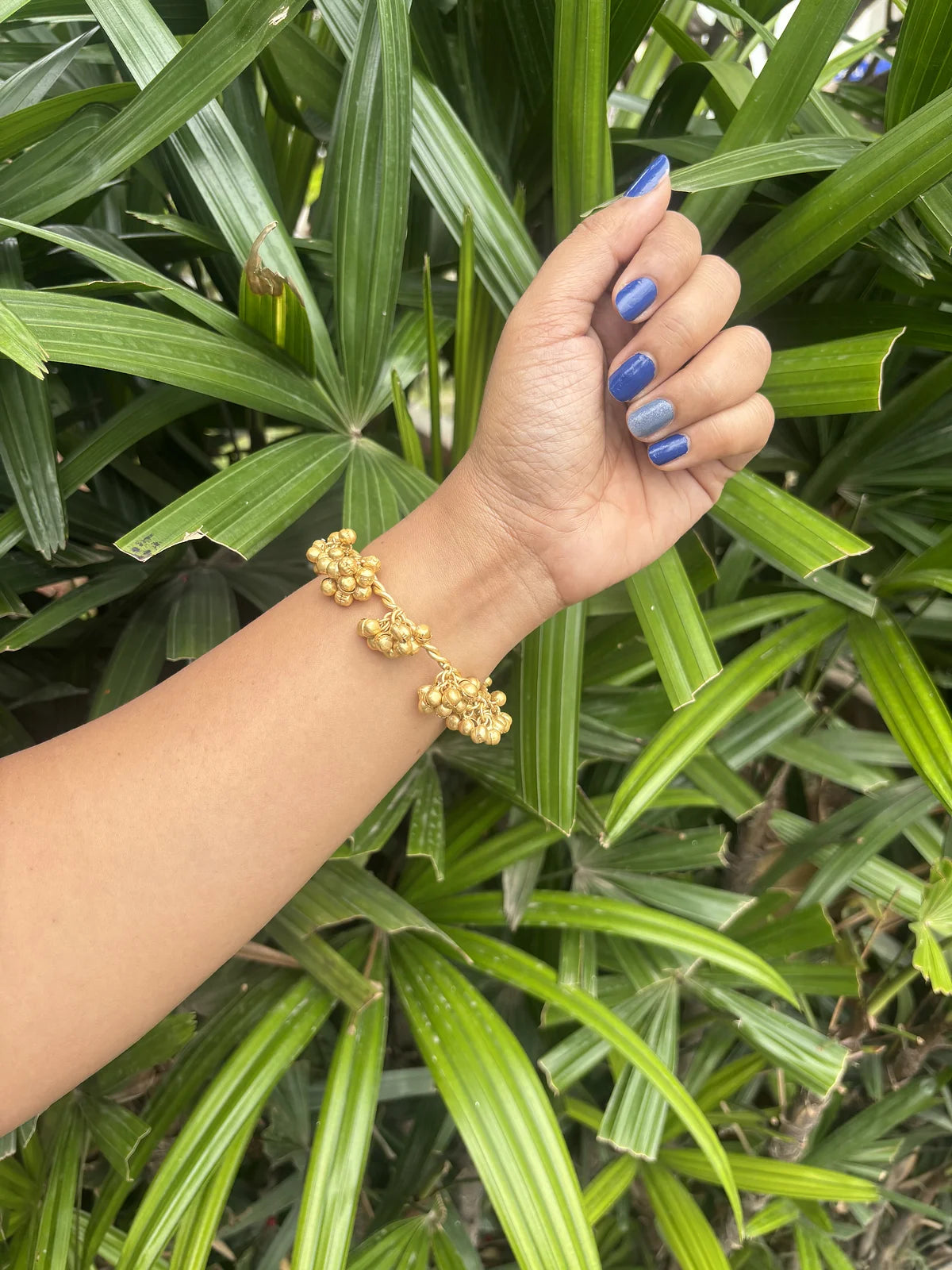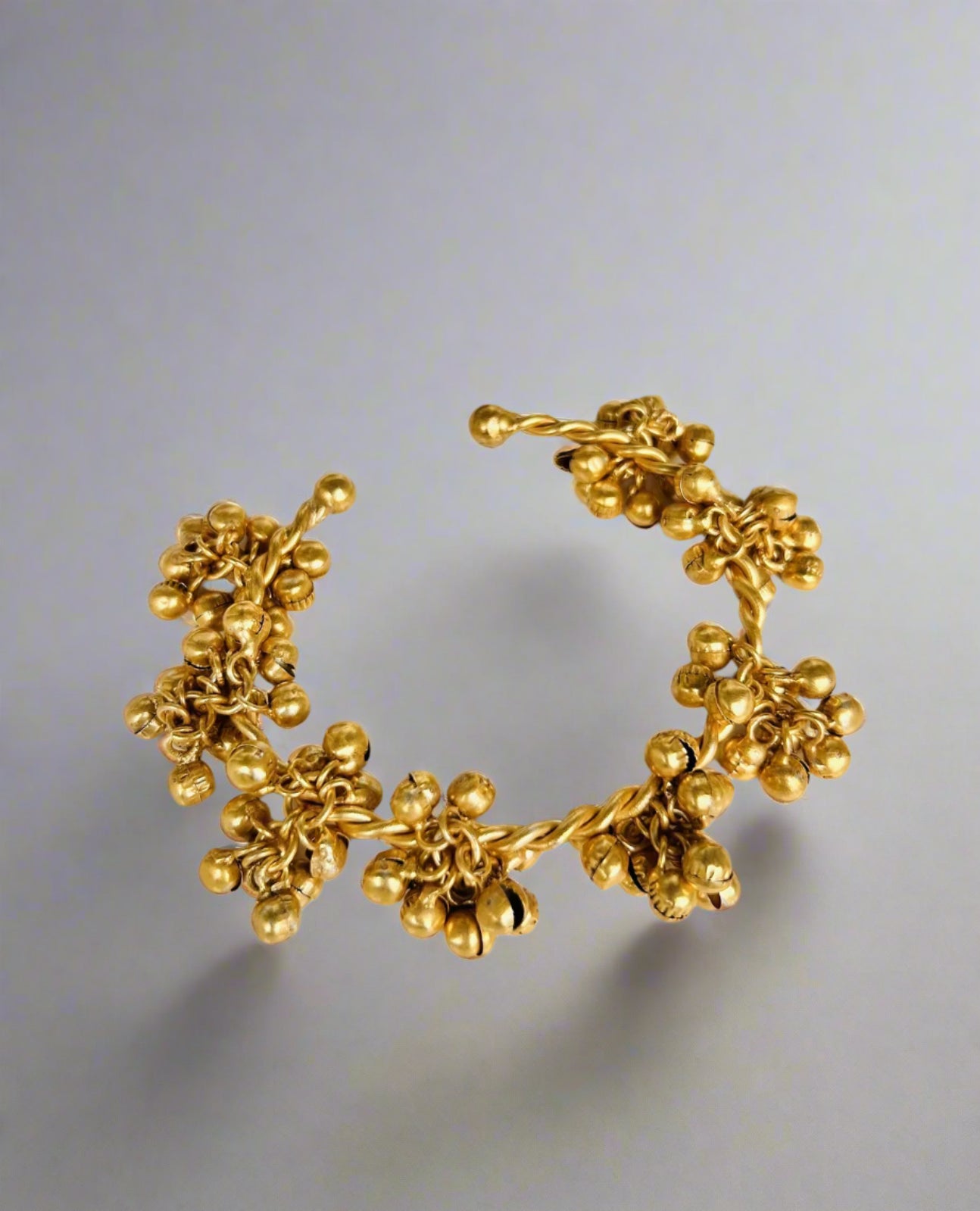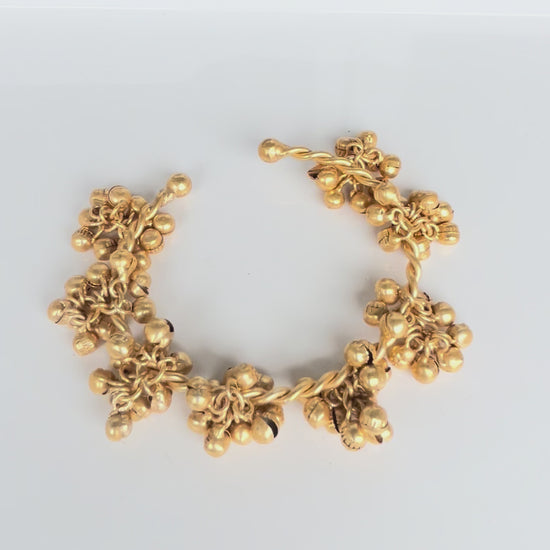 The Kashmiri Gunguru Handcuff combines traditional charm with premium craftsmanship. This luxury bangle features intricately attached gungurus that produce a delicate, rhythmic sound, enhancing both its aesthetic and sensory appeal. Crafted with attention to detail, it offers durability and elegance, making it an exquisite accessory for those who appreciate refined cultural artistry.
