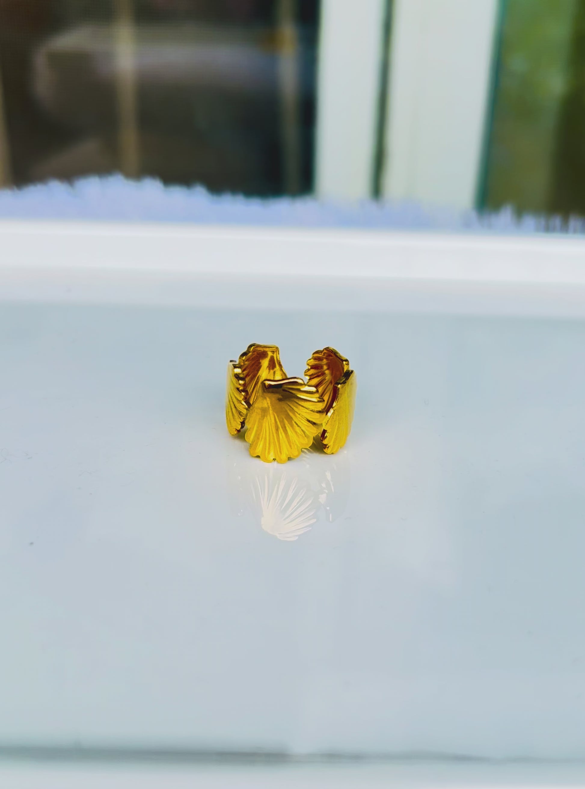 Inspired by the beauty of the ocean, the Seashell Ring features delicately sculpted golden seashell motifs in a chic adjustable band. Crafted with an anti-tarnish finish, it retains its radiant shine and is designed for lasting wear. A playful yet elegant piece, it’s perfect for beach lovers and anyone who wants to carry a touch of seaside magic wherever they go.
